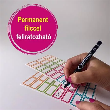 -praktikus névmegjelöléshez uzsonnásdobozokon, kulacsokon és egyéb holmikon óvodákban és iskolákban