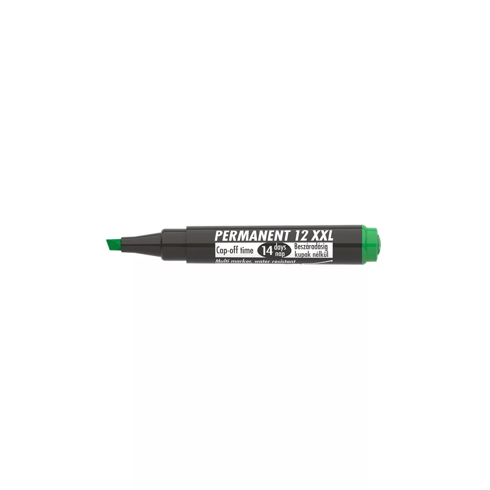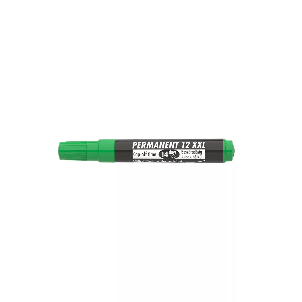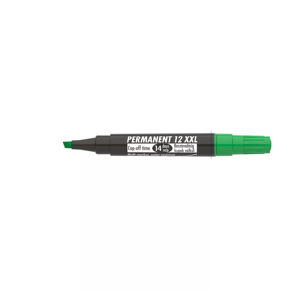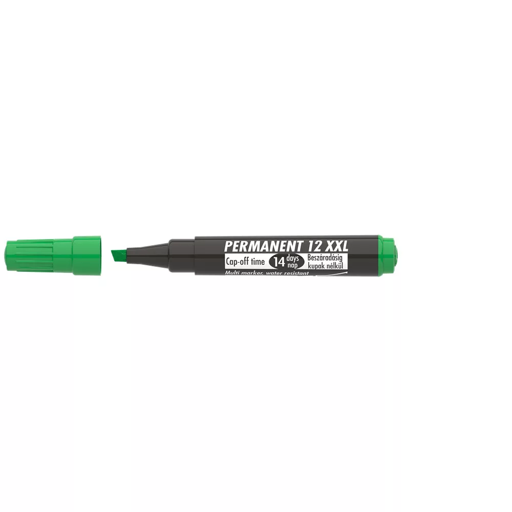 Műanyag, üveg, fém, fa, illetve szinte minden felület feliratozására, jelölésére alkalmas, alkoholbázisú festékkel töltött permanent marker. Speciális tulajdonsága, hogy 14 napig kupak nélkül sem szárad be. Gyorsan száradó festék, írásképe törlés- és vízálló. Megnövelt élettartam a nagyobb méretű testnek köszönhetően. Vágott csúccsal. Vonalvastagság: 1-4 mm. Katalóguskód: 24651