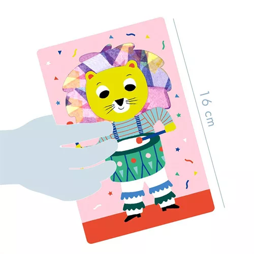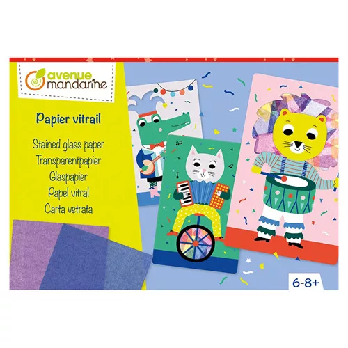Fedezd fel újra az üvegfestés hangulatát ezzel a kreatív készlettel, amelyben 5 darab állatos képeslapot díszíthetsz élénk, áttetsző színes papírokkal.