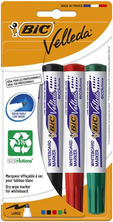 BIC Flipchart- és táblamarker készlet, 1,4 mm, kúpos, BIC" Velleda ecolutions", 4 különböző szín