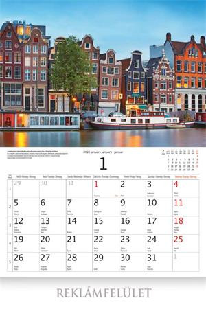 -naptár rész: magyar, angol, német nyelven, magyar ünnepek feltüntetésével