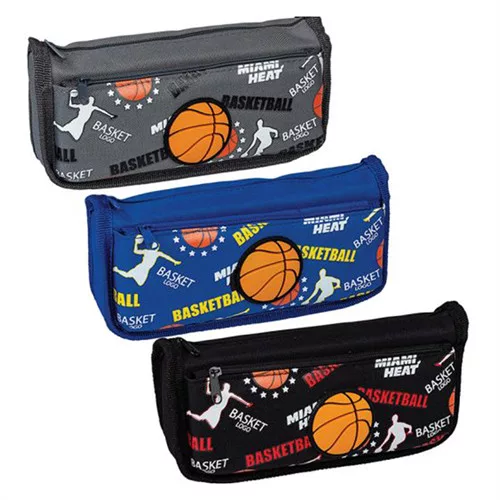 Két rekeszes cipzáras, töltetlen tolltartó textilből.