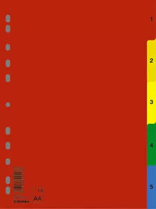 DONAU Regiszter, műanyag, A4, 1-5, DONAU, színes