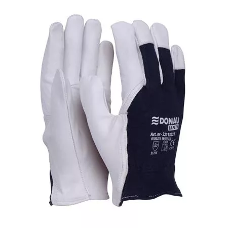 Kiváló minőségű védőkesztyű, teljes kecskebőrből készült markolatrésszel és pamut-poliészter szövetből készült felső résszel.