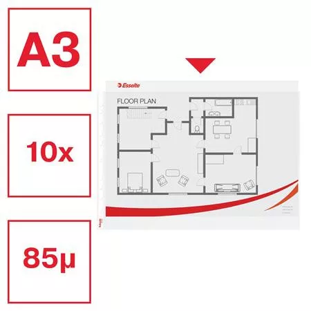 Matt, átlátszó felületű lefűzhető tasakok, amelyek ideálisak nagyobb formátumú rajzok, tervek, poszterek tárolására.
