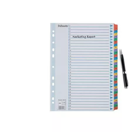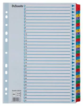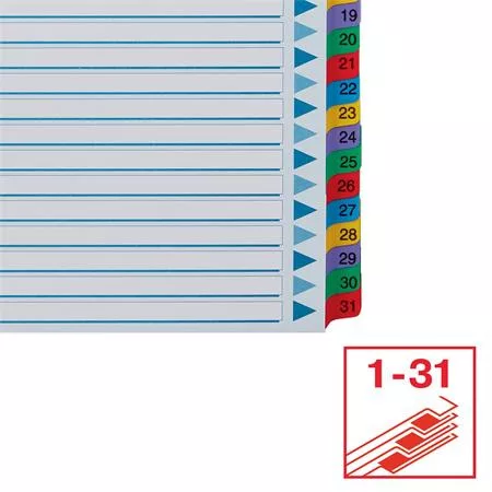 - 1-31 felirattal rendelkező regiszter fülek a dokumentumok gyors eléréséhez
