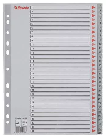 - 1-31 felirattal rendelkező regiszter fülek a dokumentumok gyors eléréséhez