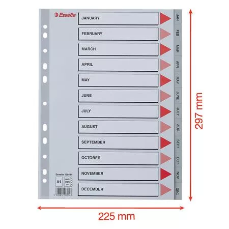- Jan-Dec felirattal rendelkező regiszter fülek a dokumentumok gyors eléréséhez