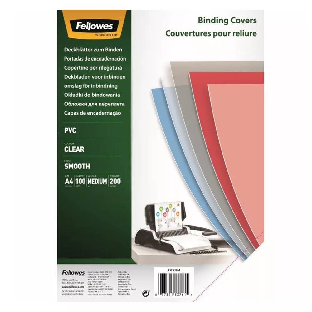 200 mikron vastagságú, fényes, víztiszta előlap spirálozáshoz Méret: A4 Csomagolás: 100db/csomag Egyaránt alkalmas fém és műanyag spirálokhoz Katalóguskód: 28838