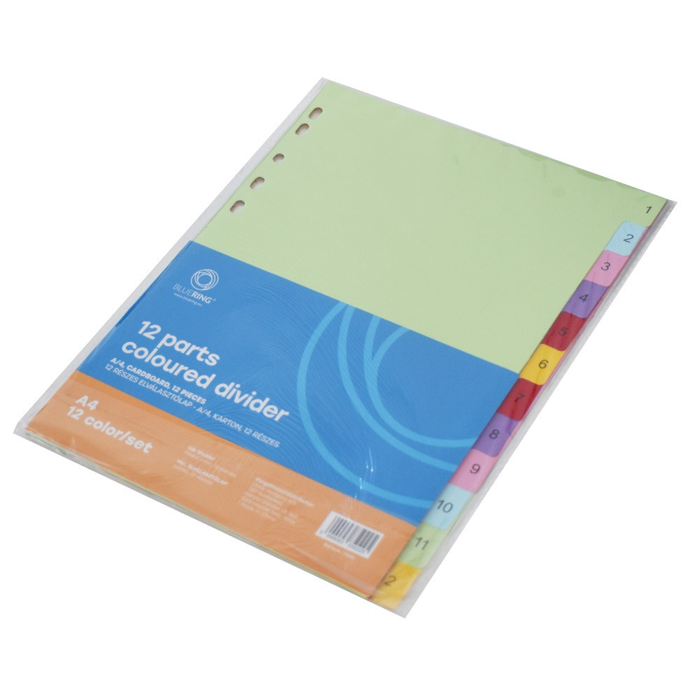 Színregiszteres karton elválasztólap iratok kategorizálásához. 11 lefűzőlyukkal, A4 méretű iratokhoz. Katalóguskód: 12222