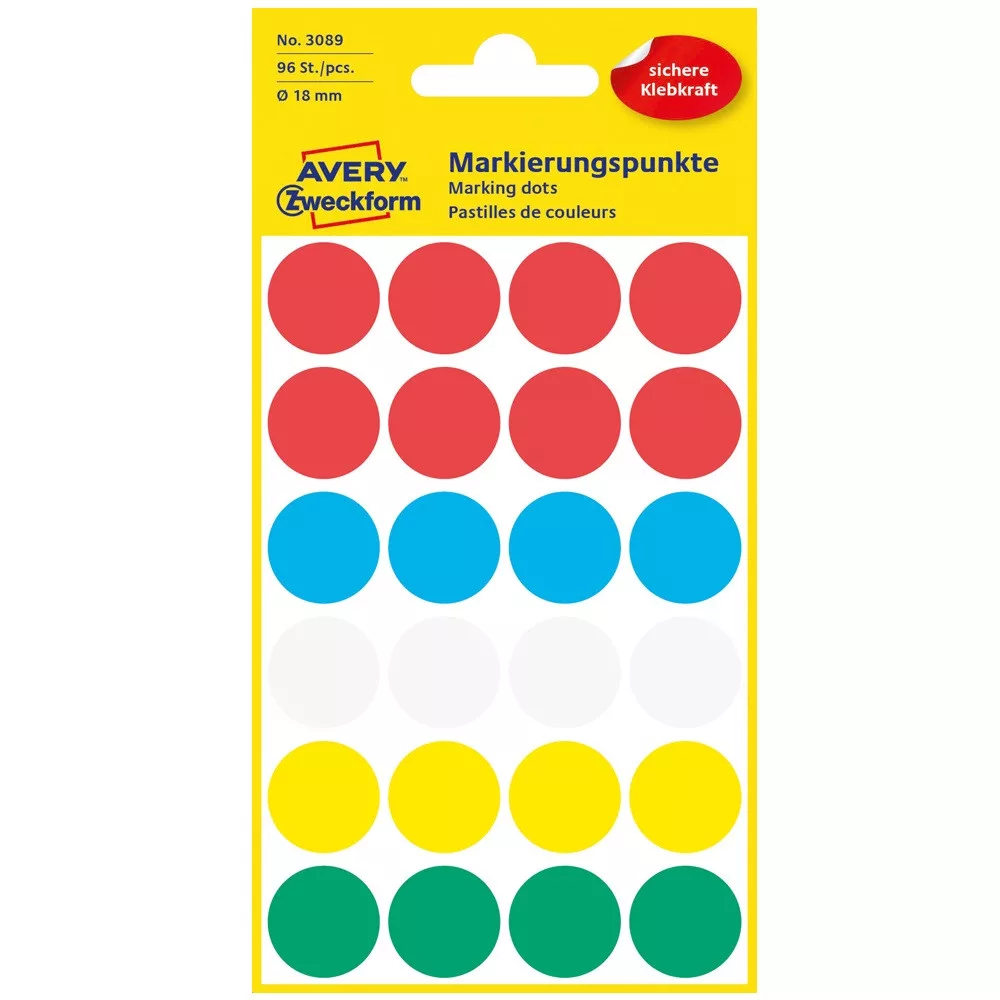 Címke mérete: 18 mm Csomag tartalma: 96 jelölőpont/csomag Az AVERY ZWECKFORM jelölőpontok tökéletesek jelölésre, rendszerezésre, tervezésre, iratrendezésre. Katalóguskód: 25388