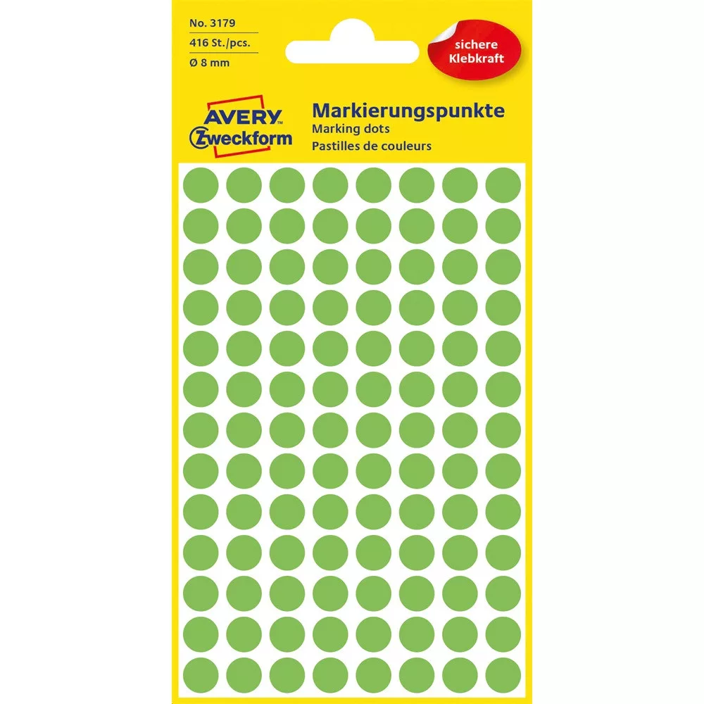 Címke mérete: 8 mm Csomag tartalma: 416 jelölőpont/csomag Az AVERY ZWECKFORM jelölőpontok tökéletesek jelölésre, rendszerezésre, tervezésre, iratrendezésre. Katalóguskód: 25366