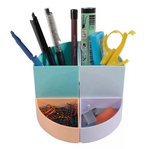 - 2 különböző magasság: 2 magasabb rész a tollak, ceruzák, ollók, vonalzók tárolására és 2 kisebb rész az apró tárgyaknak, mint gemkapcsok, tűzőkapcsok, radír stb.