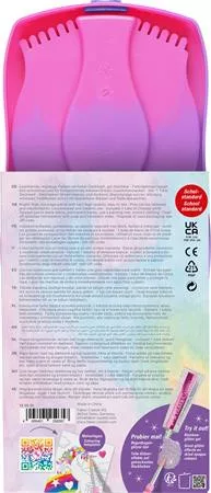 -a készlet tartalma: 12 különboző színű vízfesték, 1 tubus fehér tempera + unikornis matrica