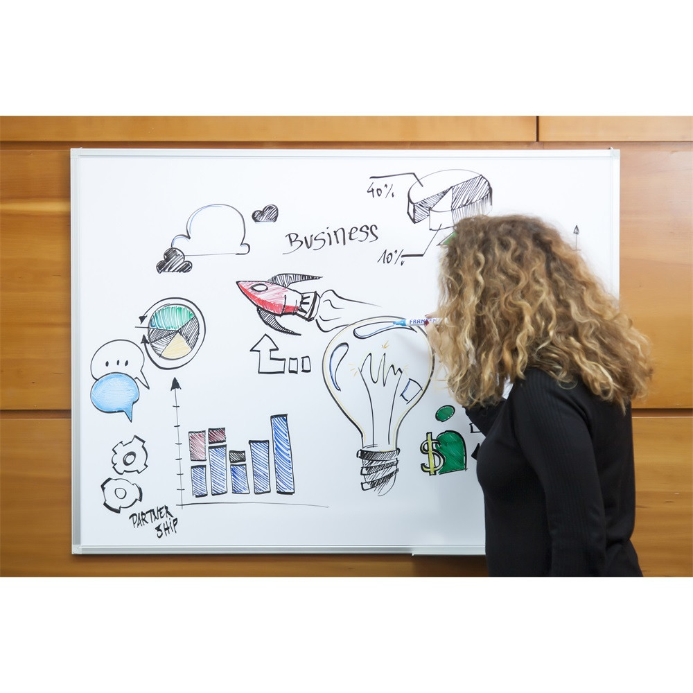 A kiszállított tábla sérülésmentes állapotáról a futár távozása előtt győződjön meg, mert annak állapotáról utólagos reklamációt nem áll módunkban elfogadni, megértésüket köszönjük!Zománcozott, Karc- és saválló írófelület. Az írófelületre 25 év garancia. Prémium minőségű fehértábla eloxált aluminium kerettel, írható, törölhető és mágnesezhető felülettel. Írószertartóval és a felszereléshez szükséges tartozékokkal szállítjuk. Álló vagy fekvő helyzetben is felszerelhető. A tábla felületenén védőfólia található, amelyet használt előtt el kell távolítani. Az írást 1 órán belül el kell távolítani, mert beívódhat a tábla felületébe! Darabonként kartoncsomagolt, biztonságosan szállítható. Katalóguskód: 30750