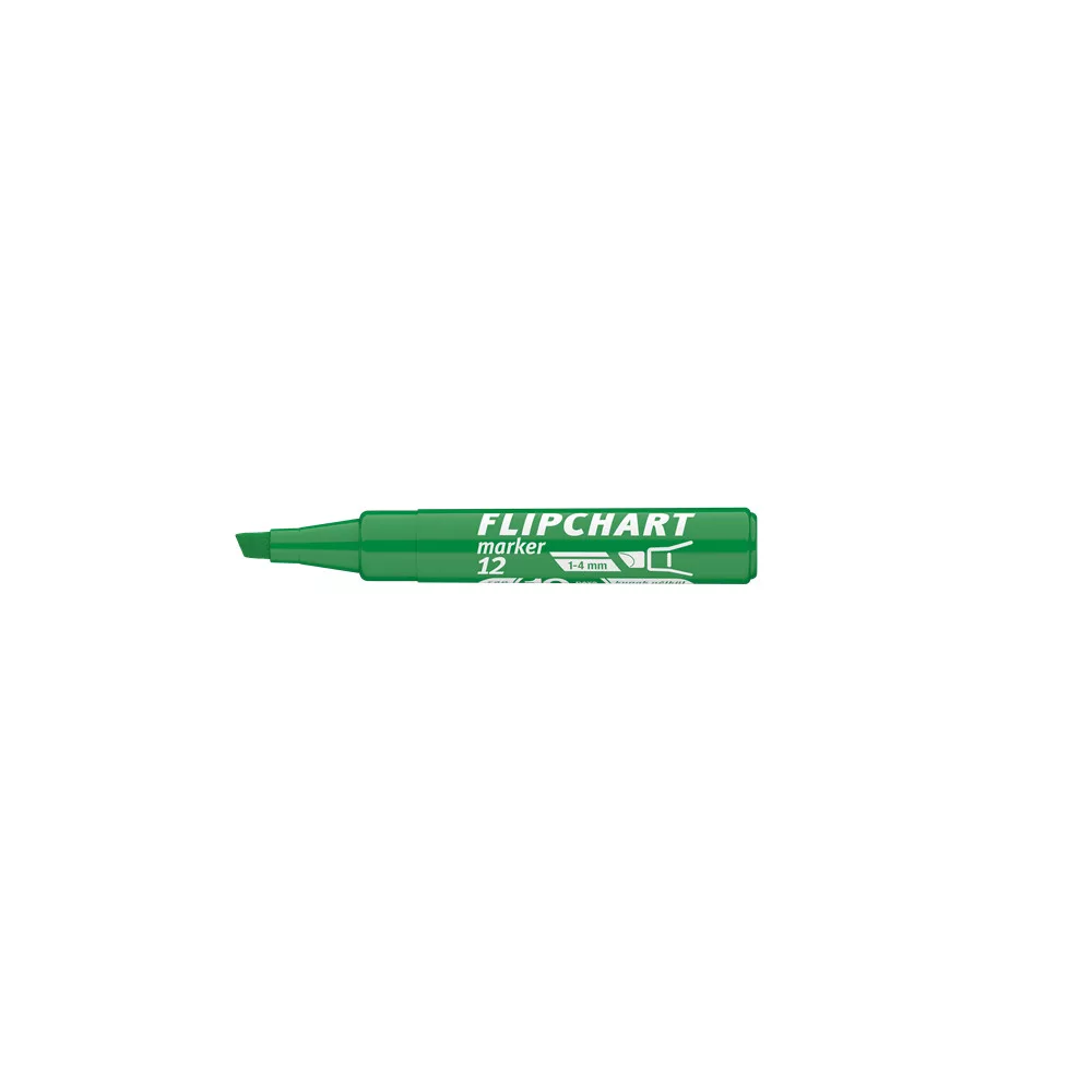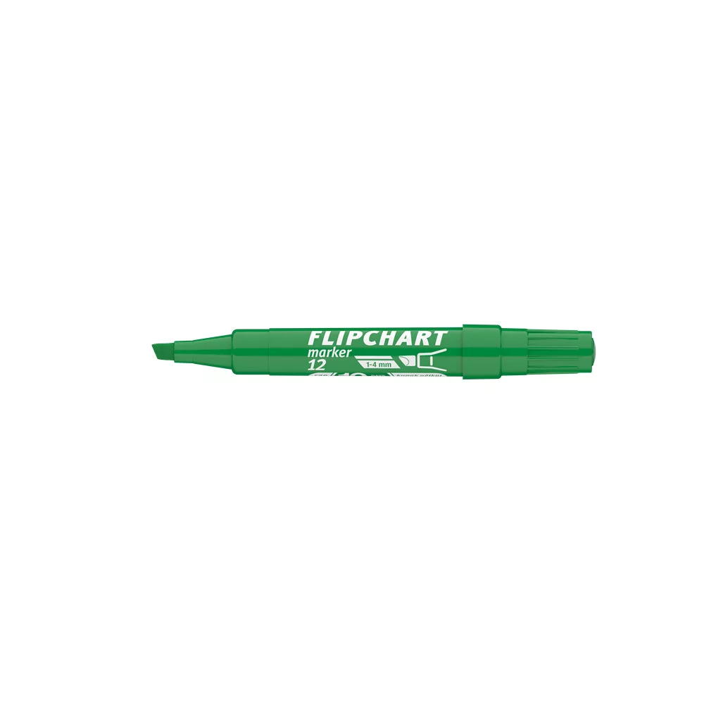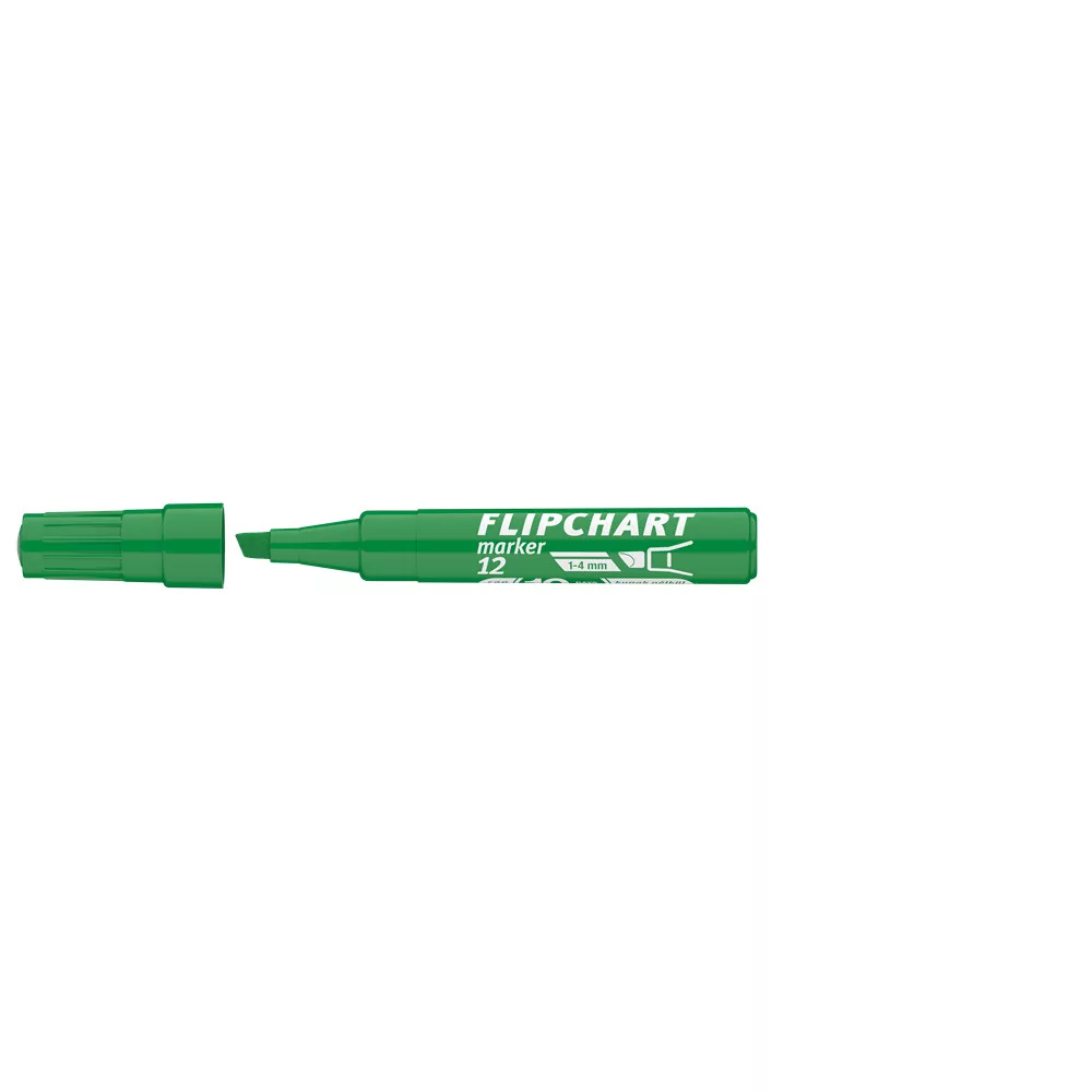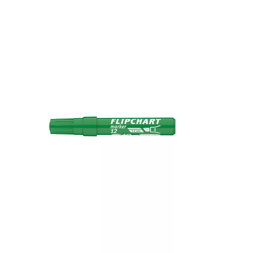 Flipchart tömbök és egyéb papírívek feliratozására alkalmas, vízbázisú festékkel töltött marker. A festék a papír másik oldalára nem üt át. Megnövelt élettartam a nagyobb méretű testnek köszönhetően. Vágott csúccsal. Vonalvastagság: 1-4 mm.Katalóguskód: 24692