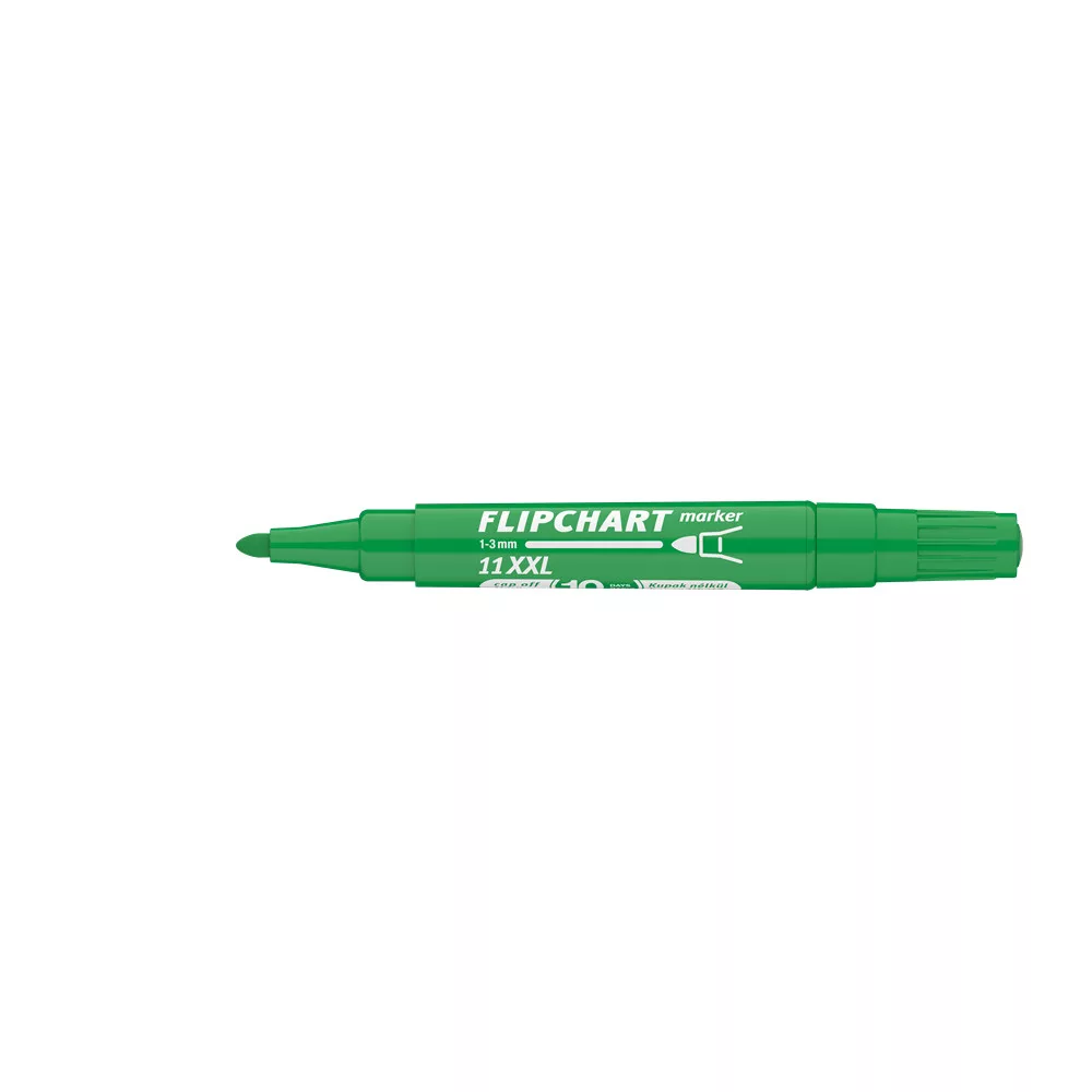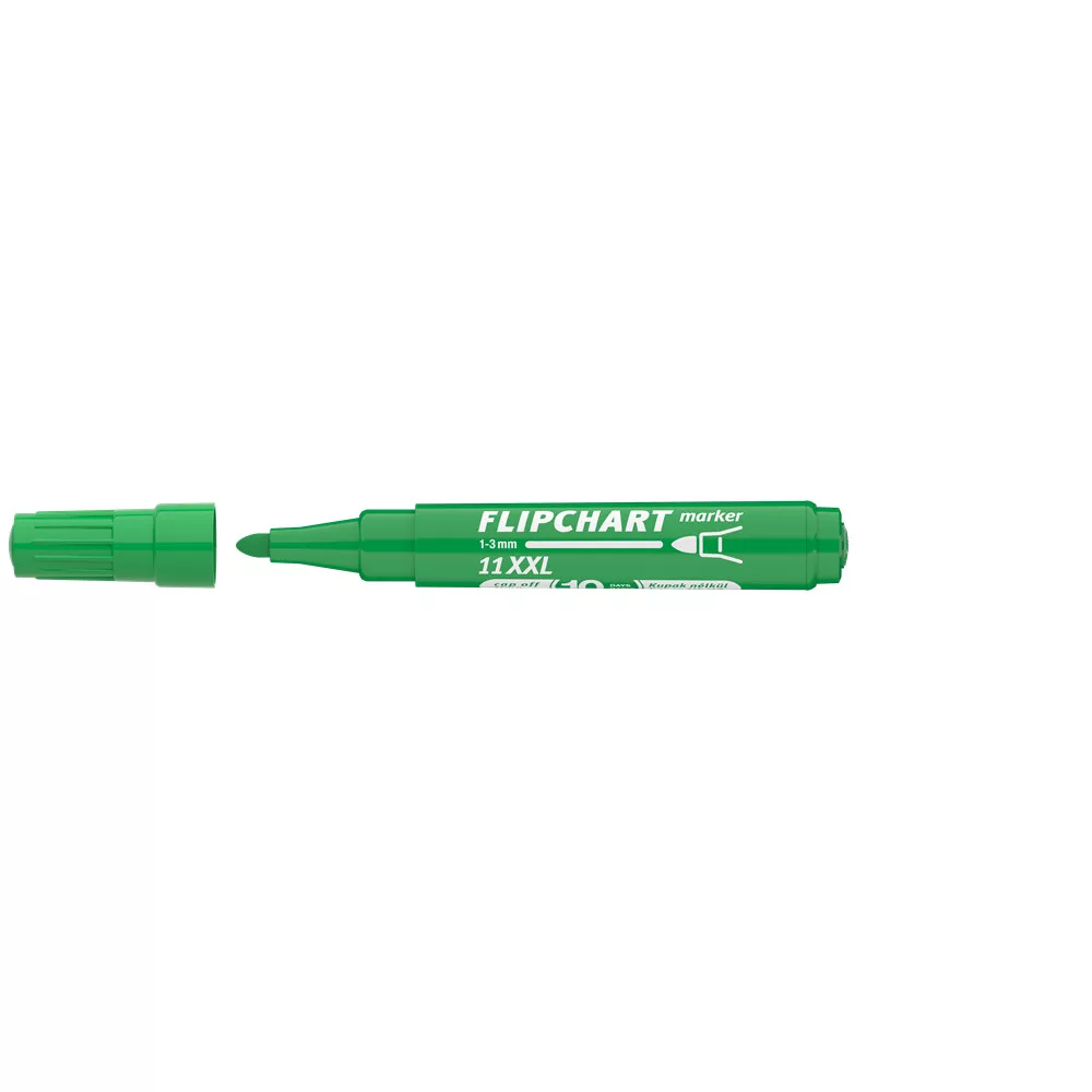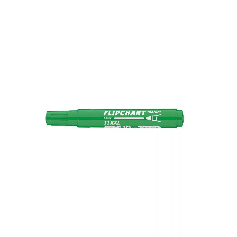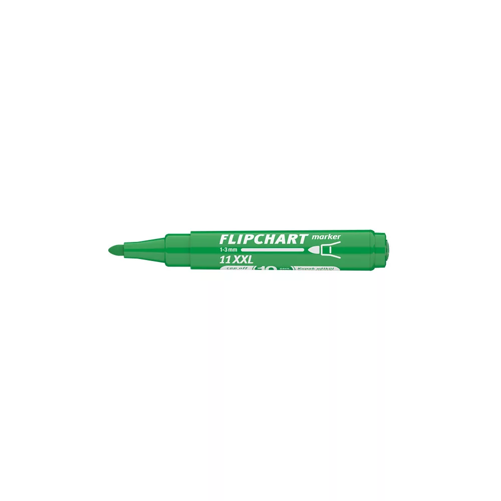 Flipchart tömbök és egyéb papírívek feliratozására alkalmas, vízbázisú festékkel töltött marker. A festék a papír másik oldalára nem üt át. Megnövelt élettartam a nagyobb méretű testnek köszönhetően. Kerekített csúccsal. Vonalvastagság: 3 mm.. 10DB/DOBOZ Katalóguskód: 13629