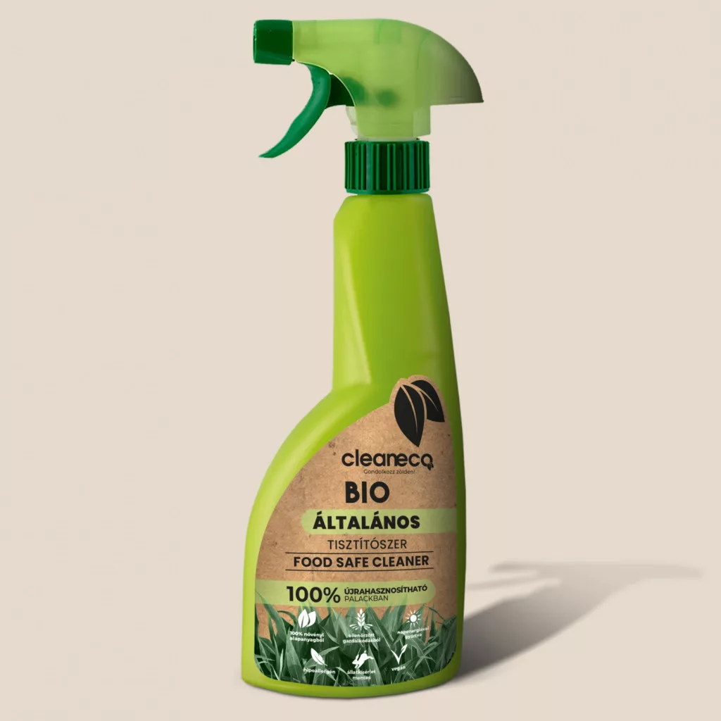 A Cleaneco Bio Food Safe Cleaner kizárólag biológiai eredetű alapanyagokból készített nagy hatásfokú, hipoallergén, illatmentes tisztítószer. A megtisztított felületet azonnal használhatja, az élelmiszerekre a termék permete sem jelent kémiai kockázatot.