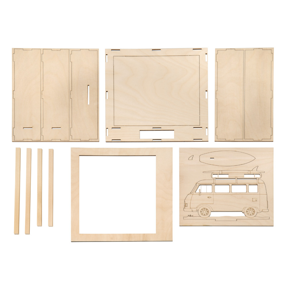 Holz Bausatz Campingbus, 24x24x6,5cm, 13-darabos, Box 1Set, natúr