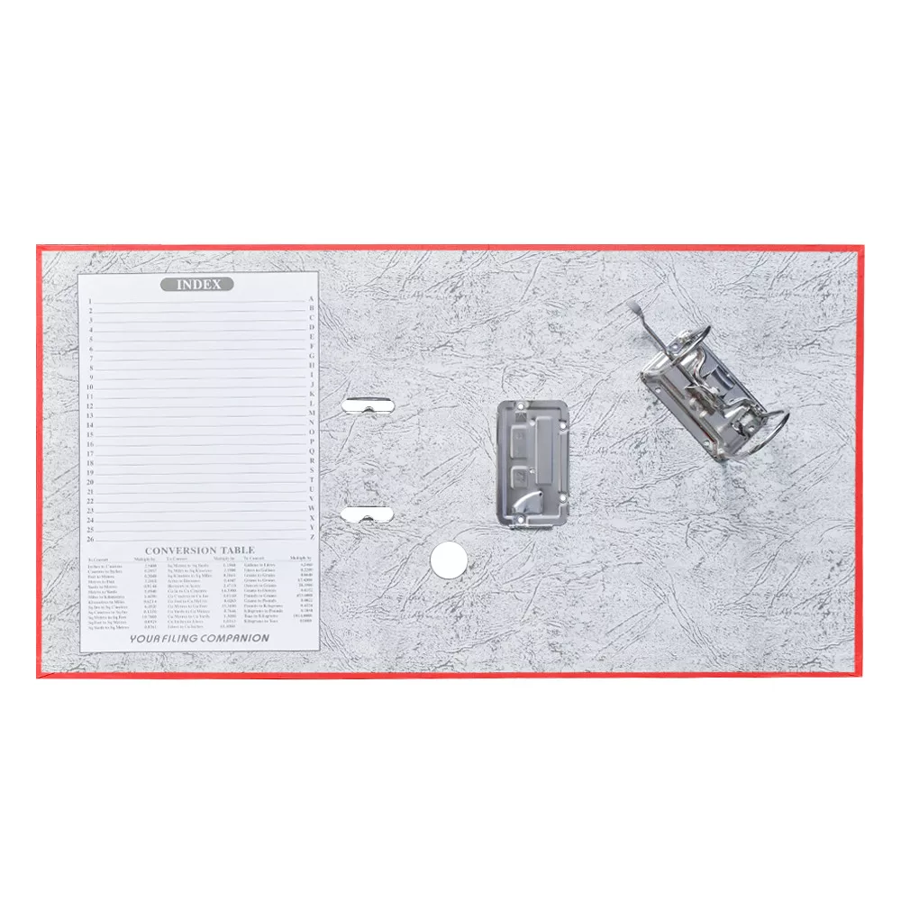 Emelőkaros iratrendező általános használatra. Kívül PP, belül fehér karton borítással, kihúzólyukkal. Cserélhető gerinccímke a feliratozáshoz. Tárolókapacitás 350 lap (A4 80gr.). A terméket lapra szerelve szállítjuk, a mellékelt emelőkaros szerkezet bepattintása gyors és egyszerű, 5 másodperc alatt elvégezhető és iratrendezőnk máris használatra kész! Katalóguskód: 12057