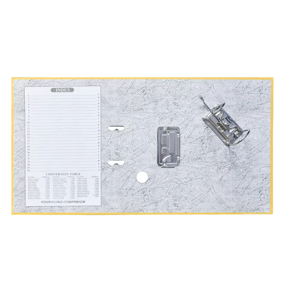 Emelőkaros iratrendező általános használatra. Kívül PP, belül fehér karton borítással, kihúzólyukkal. Cserélhető gerinccímke a feliratozáshoz. Tárolókapacitás 350 lap (A4 80gr.). A terméket lapra szerelve szállítjuk, a mellékelt emelőkaros szerkezet bepattintása gyors és egyszerű, 5 másodperc alatt elvégezhető és iratrendezőnk máris használatra kész! Katalóguskód: 12058