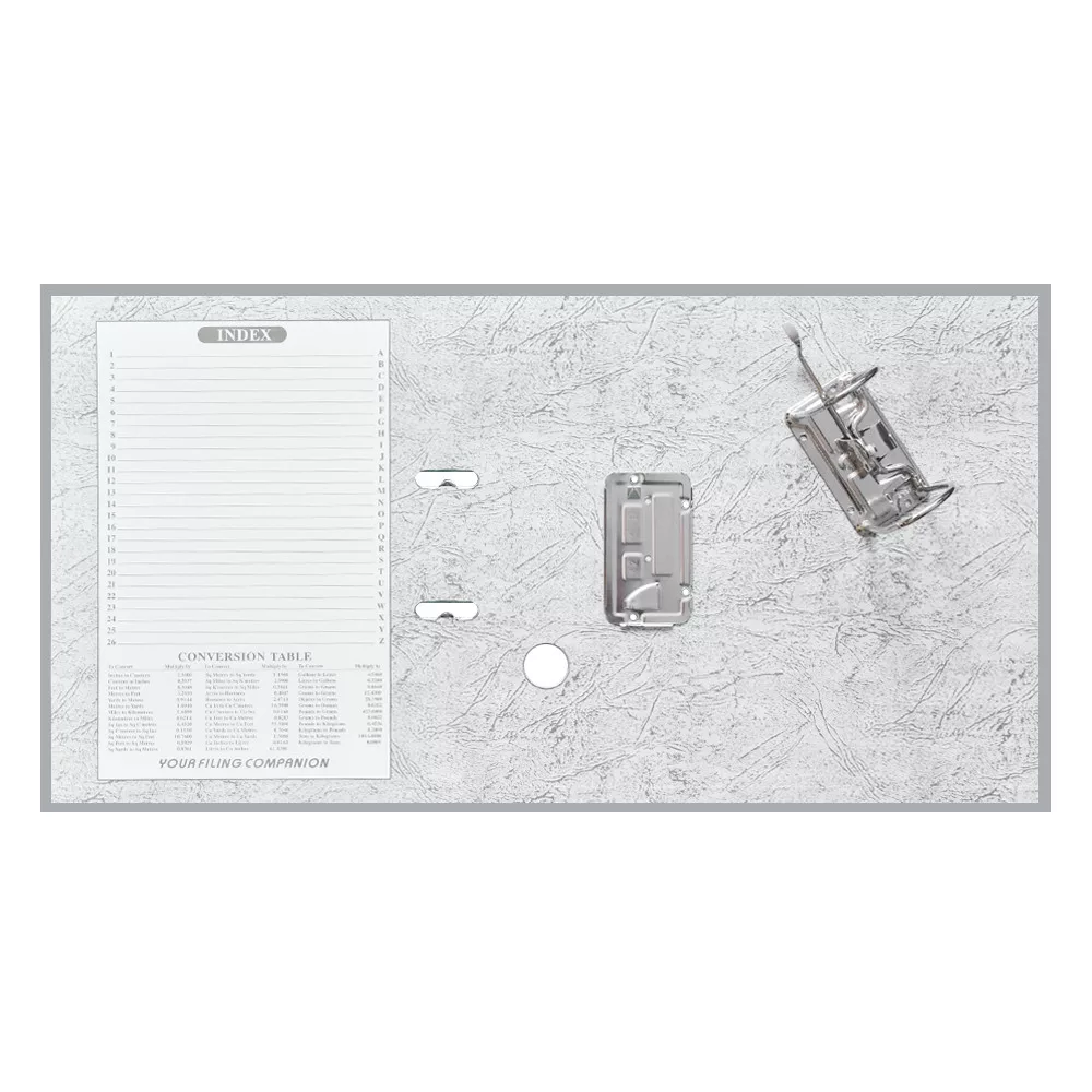 Emelőkaros iratrendező általános használatra. Kívül PP, belül fehér karton borítással, kihúzólyukkal. Cserélhető gerinccímke a feliratozáshoz. Tárolókapacitás 350 lap (A4 80gr.). A terméket lapra szerelve szállítjuk, a mellékelt emelőkaros szerkezet bepattintása gyors és egyszerű, 5 másodperc alatt elvégezhető és iratrendezőnk máris használatra kész! Katalóguskód: 26059