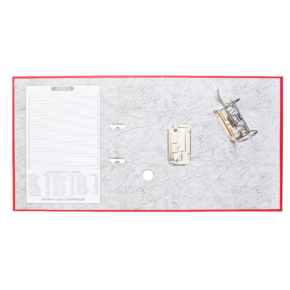 Emelőkaros iratrendező általános használatra. Kívül PP, belül fehér karton borítással, kihúzólyukkal. Cserélhető gerinccímke a feliratozáshoz. Tárolókapacitás 500 lap (A4 80gr.). A terméket lapra szerelve szállítjuk, a mellékelt emelőkaros szerkezet bepattintása gyors és egyszerű, 5 másodperc alatt elvégezhető és iratrendezőnk máris használatra kész! Katalóguskód: 12067