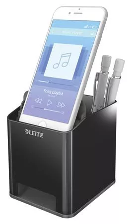 E egyedülálló formatervezésének köszönhetően felerősíti a telefontartó rekeszre helyezett telefon hangját