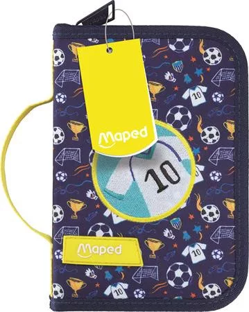 Töltött tolltartó divatos mintával, amely minden szükséges írószert tartalmaz a tanórákhoz. Praktikus kialakításának köszönhetően a ceruzák, radírok, ollók és egyéb eszközök átláthatóan rendszerezhetők benne.