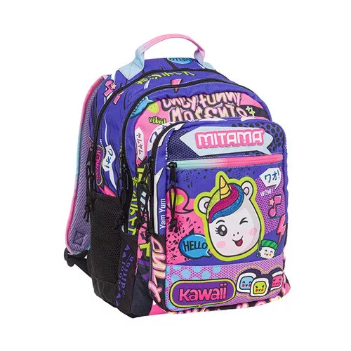 Fedezze fel a MITAMA ergonomikus iskolai hátizsákot, amely tökéletes társ a mindennapi iskolai kalandokhoz. A színes és vidám minták minden gyermek számára izgalmas és szórakoztató viseletet biztosítanak, miközben az ergonomikus kialakítás csökkenti a háton és a vállon lévő nyomást.