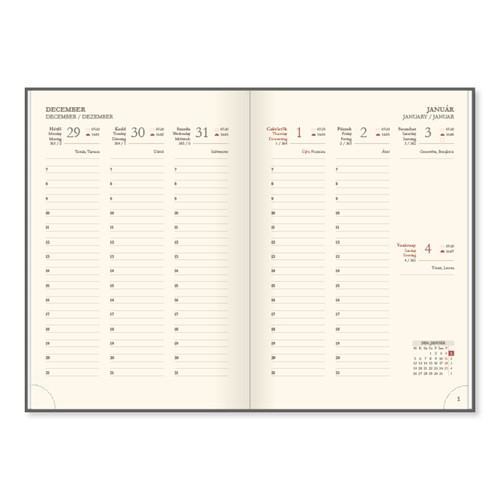 • Oldalszám: 140 oldal – 16 információs oldal, 112 naptároldal, jegyzetek, telefonregiszter, 2027 januári tervező