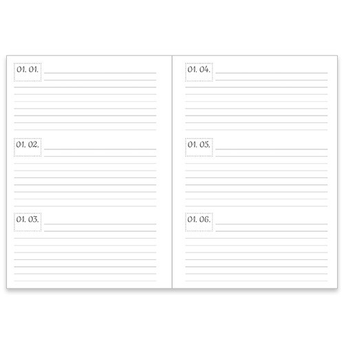 - Terjedelem: 144 oldal (9 információs oldal, 122 naptároldal, 13 jegyzetoldal)