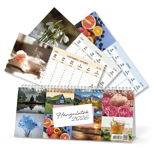A pd Hangulatok 2026 asztali naptár a praktikus heti tervezést esztétikus, hangulatfotókkal párosítja. Két hét/lap elrendezése átlátható időbeosztást kínál, miközben takarékosan bánik a hellyel az íróasztalon. A tartós spirálozás és a stabil kartontalp biztosítja a kényelmes lapozhatóságot és a hosszú távú használatot.