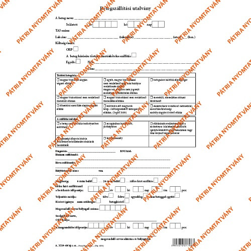 Pátria Nyomtatvány Betegszállítási utalvány szabadlap A/4 álló