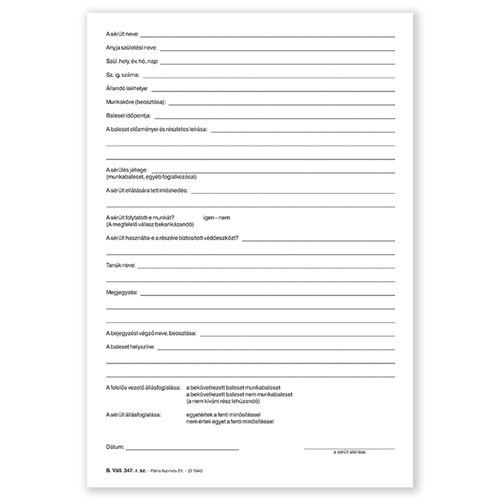 Pátria Nyomtatvány Munkahelyi munkabaleseti napló 24 lapos füzet A/4 álló
