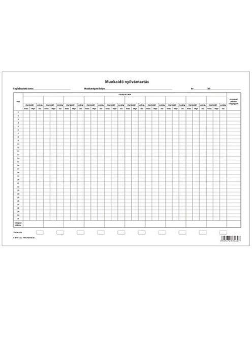Pátria Nyomtatvány Munkaidő nyilvántartás 420x295 mm