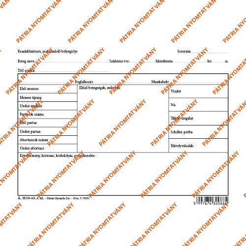 Pátria Nyomtatvány Nőgyógyászati karton szabadlap A/5 fekvő