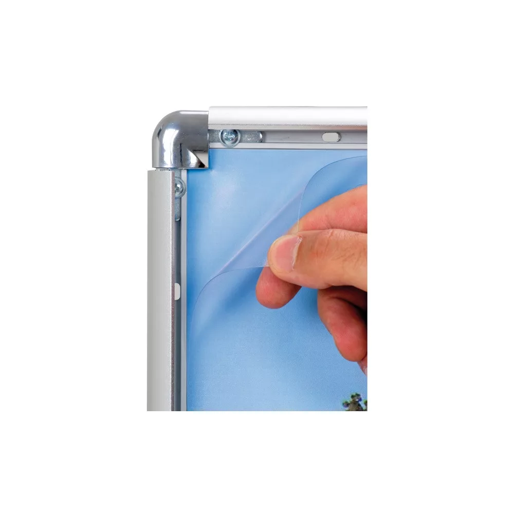 Elegáns 25 mm széles eloxált aluminium képkeret a dokumentumok és poszeterek egyszerű és biztonságos cseréjéhez. A keret függőlegesen és vízszintesen is felszerelhető / szereléshez szükéseges tartozékokat tartalmazza /. PVC lap védi a dokumentumokat.Méret: 24x33x1,2 Katalóguskód: 30838
