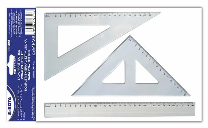 - 1 db 45°-os, 16 cm-es számskálájú háromszög vonalzó