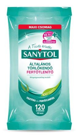 A Sanytol Fertőtlenítő felülettisztító törlőkendő elpusztítja a baktériumok, vírusok, és gombák 99, 9%-át, így gondoskodik a higiénikus tisztaságról otthonában.