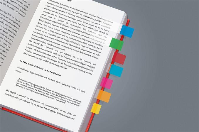 SIGEL Jelölőcímke, műanyag, 10x50 lap, 44x12,5 mm, SIGEL, vegyes színek
