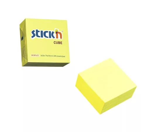 STICK N Öntapadó kockatömb, 76x76mm, 400 lap, STICK N, neonsárga
