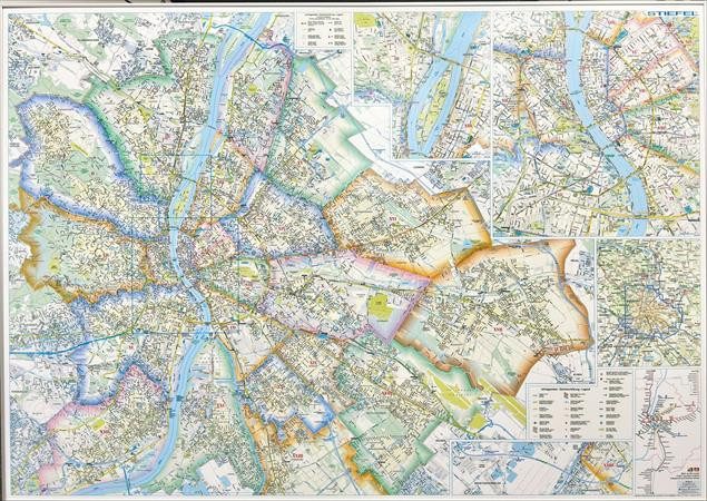 STIEFEL Falitérkép, 100x140 cm, fémléces, Budapest térképe STIEFEL