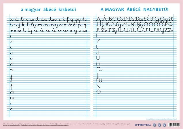 Az összes betűt (kis- és nagybetűket, ékezeteket) bemutató új tablónk készítésekor több, mint 1000 gyermeket kérdeztünk meg arról, hogy az egyes betűkről mi jut eszükbe. A rajzokkal illusztrált kiadvány hátán a vonal-elemek és az írott betűk gyakorlására van lehetőség.