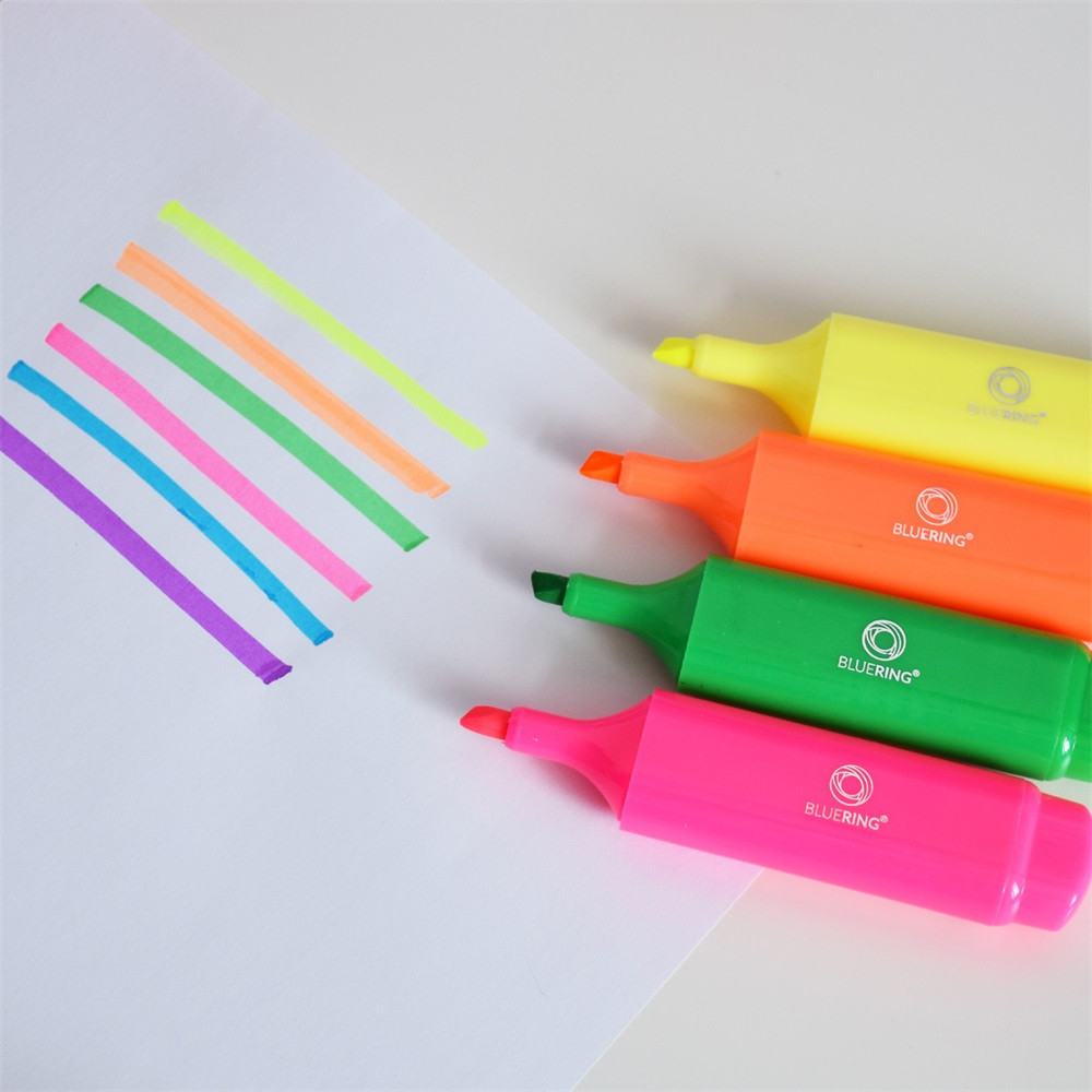 Speciális fluoreszkáló festékkel töltött szövegkiemelő. A kiemelt szöveg fénymásolható,faxolható. Klippel ellátott kupak, mely légmentesen zár. Festék színével megegyező kupak és testszín. Vágott csúccsal, 5 féle élénk színben és 2 féle készletben.Vonalvastagság: 1-2 mm (íróhegy élével), 3-5 mm (íróhegy lapjával). 12 db/doboz, 144 db/gyűjtő, 864 db/karton Katalóguskód: 1423