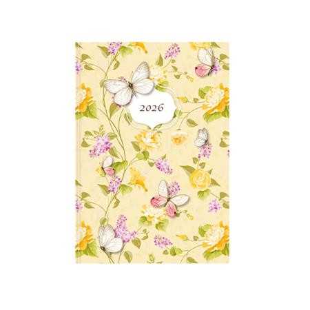 Színes grafikával díszített, matt fóliával bevont, fehér tömbös heti naptár, jelzőszalaggal és sarokperforációval.