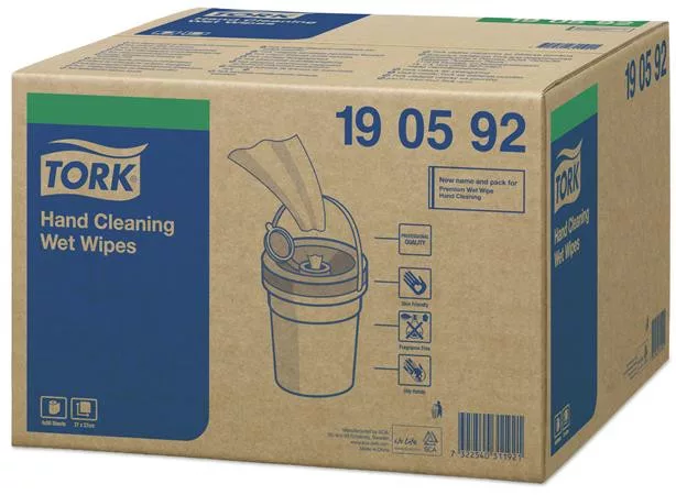 A Tork kéztisztító nedves kendők kényelmes és hatékony megoldást jelentenek a kéztisztításra, ha nem áll rendelkezésre víz.
