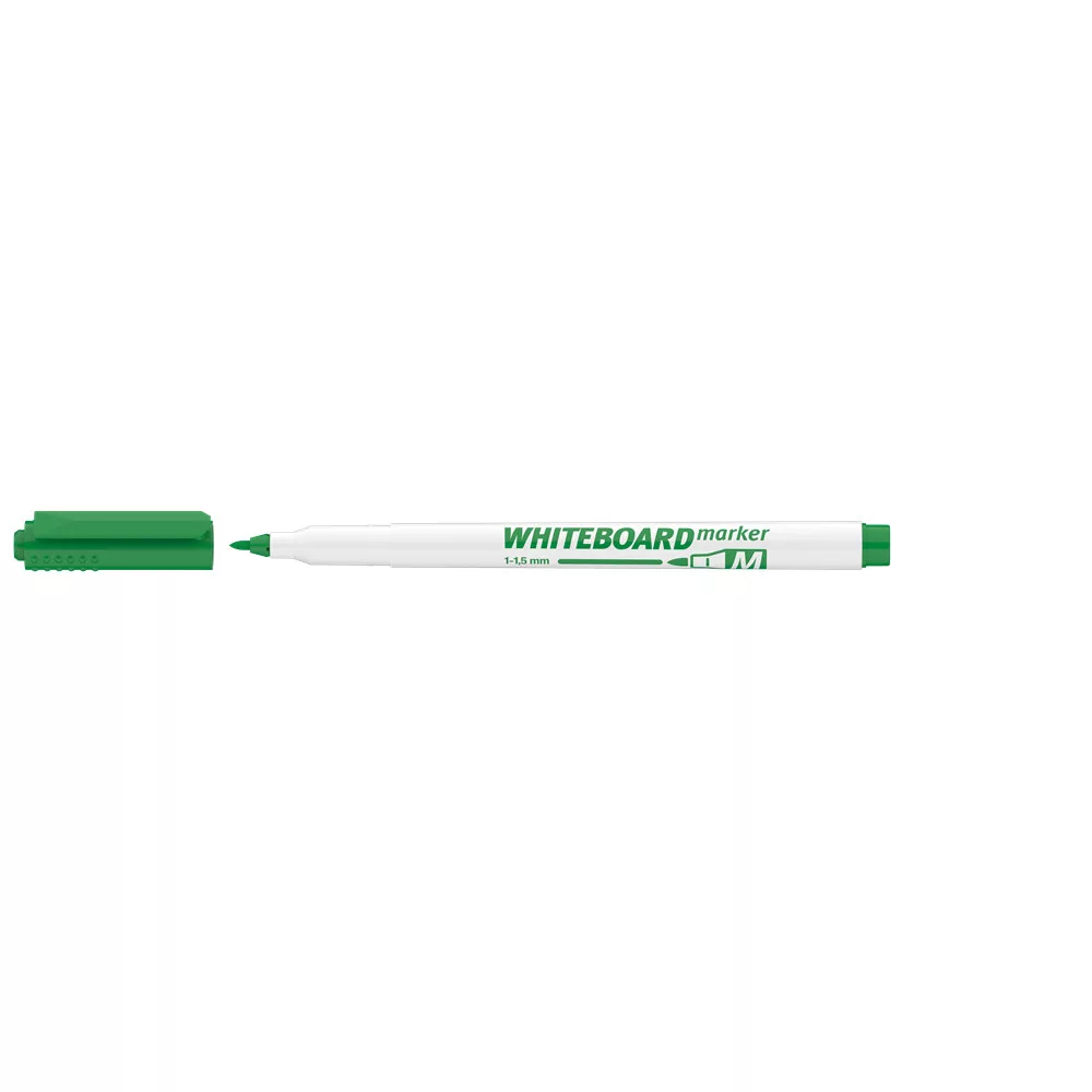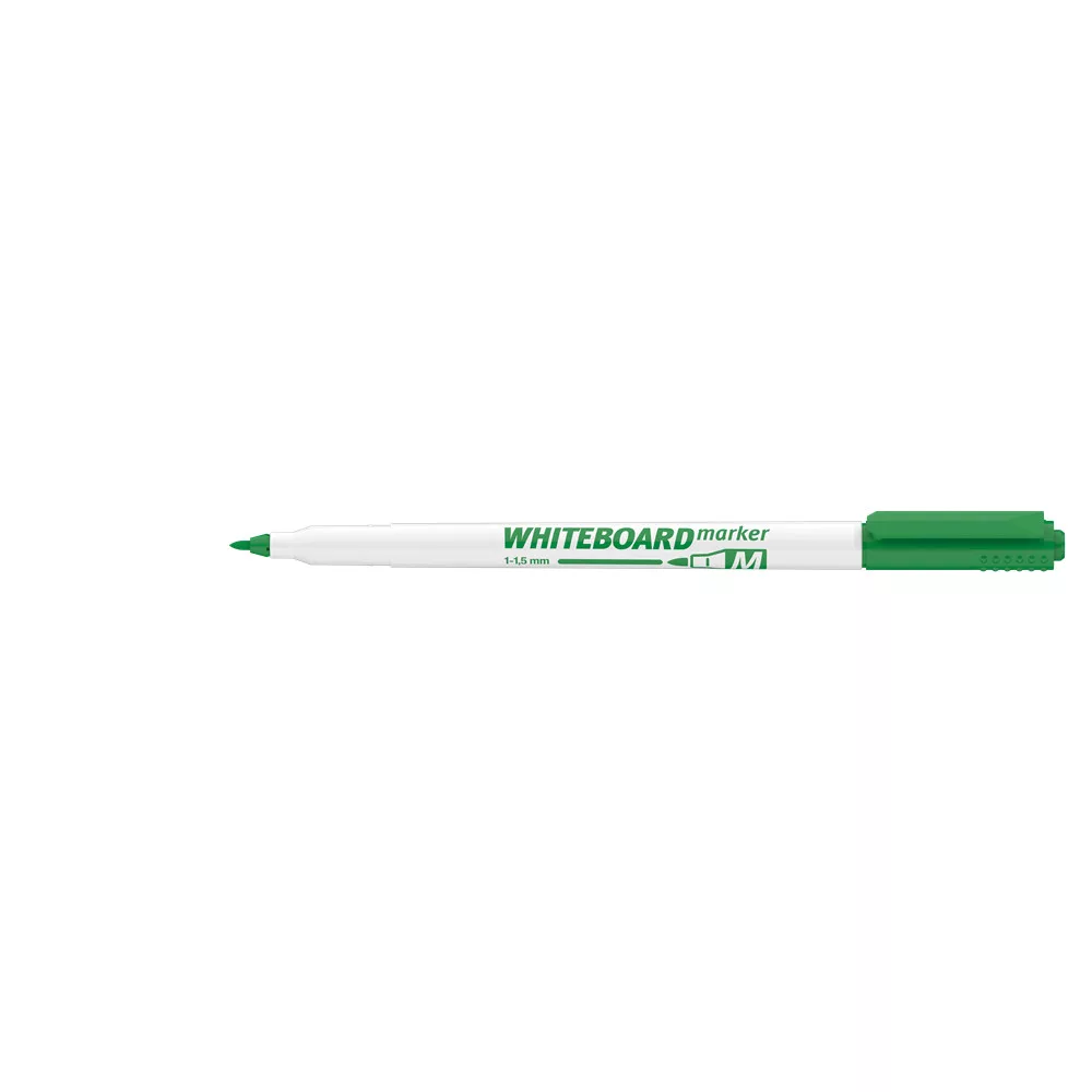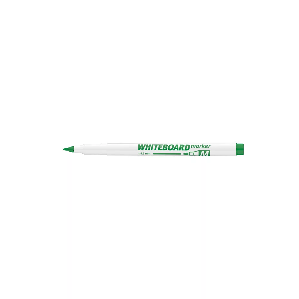Whiteboard marker, kiszerelés: 40 db/dob írásvastagság 1 - 1.5 mm, írás színe zöld, test színe fehér Fehér táblára való írásra, rajzolásra alkalmas marker, az írás szárazon letörölhető. Katalóguskód: 1306