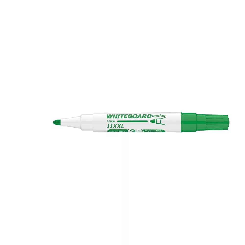 Fehér táblára való írásra, rajzolásra alkalmas marker."Cap-off" festékkel töltve, ezért néhány napig kupak nélkül sem szárad be. Az írás szárazon letörölhető. Megnövelt élettartam a nagyobb méretű testnek köszönhetően. Kerekített csúccsal .. Vonalvastagság: 3 mm. 10DB/DOBOZ Katalóguskód: 20193