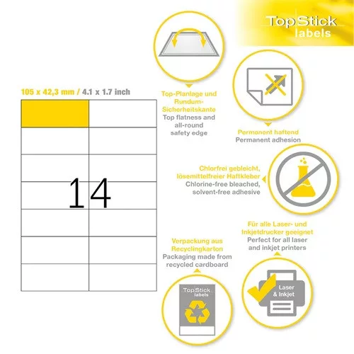 - Öntapadó etikettcímkék tartós ragasztással, A4-es lapokon.